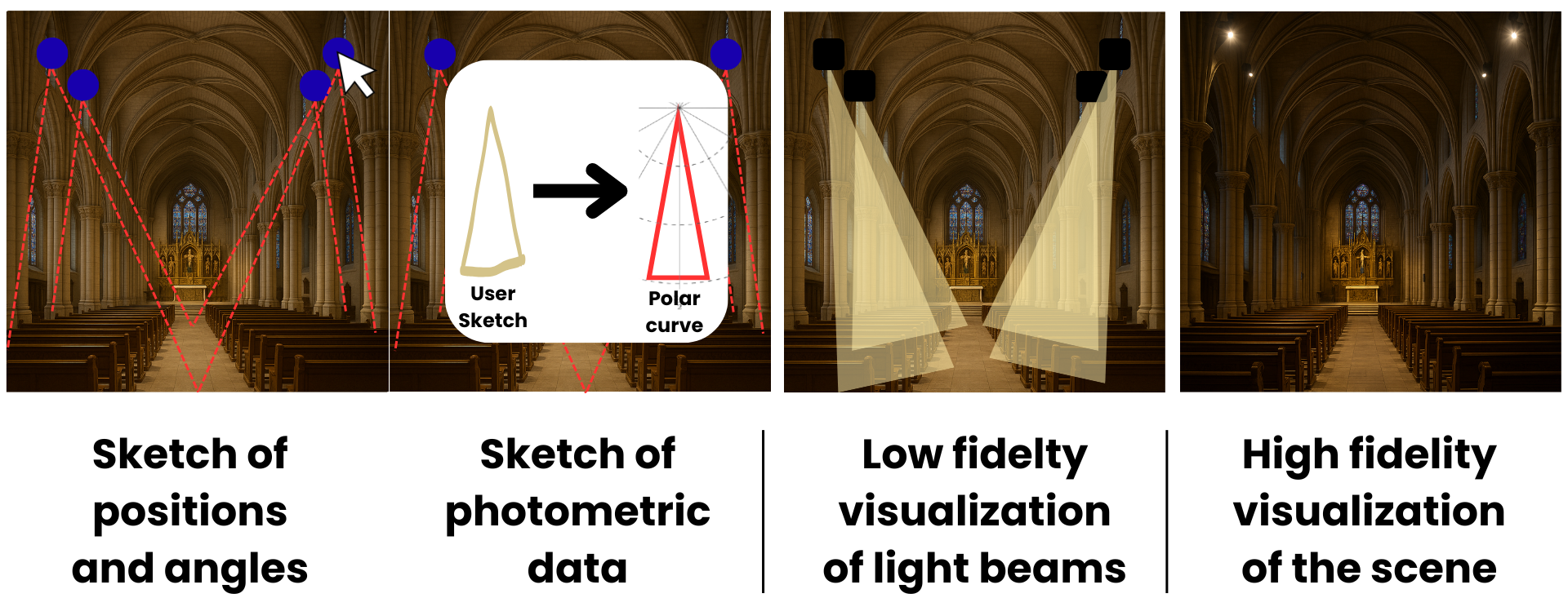 This raises a key HCI question: How can we design an interface that allows users with different expertise to communicate and manipulate lighting ideas naturally, and in a way that can be translated into measurable photometric data?
